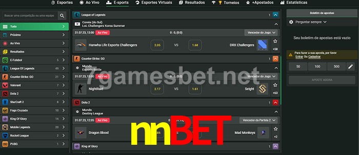 O nnbet oferece uma grande seleção de opções de apostas em e-sports com probabilidades competitivas